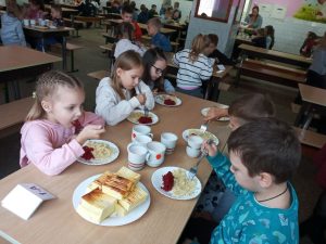 Напевно мало знайдеться людей, які не люблять сирну запіканку. Тому ця страва є найулюбленішою для наших школярів. Тут ми розуміємо, як вписується запіканка в концепцію правильного харчування по меню Є. Клопотенка. Також дієтологи радять кожній людині з’їдати до 200 грам сиру на добу. Сирна запіканка корисна для дітей, оскільки вона є чудовим джерелом білка для росту, кальцію для зміцнення кісток і зубів, а також містить вітаміни та мінерали, такі як фолієва кислота, вітаміни A, B, E, P, а також залізо, магній та цинк. Вона легко засвоюється, забезпечує тривале відчуття ситості та дає енергію. Цікавим є і той факт, що під час теплової обробки сир зберігає більшість корисних речовин. Тому сирна запіканка є найкращим варіантом сніданку для тих, хто не любить їсти сир у сирому вигляді. А для того, щоб страва була незвичайною і максимально апетитною кухарі Оржівського ліцею подають її з ягідним кюлі, яке приготовлене з літніх заморожених ягід. Всім смачного!