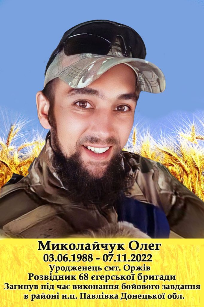 Миколайчук Олег – мужній воїн, який боровся за свободу на українській землі, за спокій в рідній домівці, за безпеку родини.