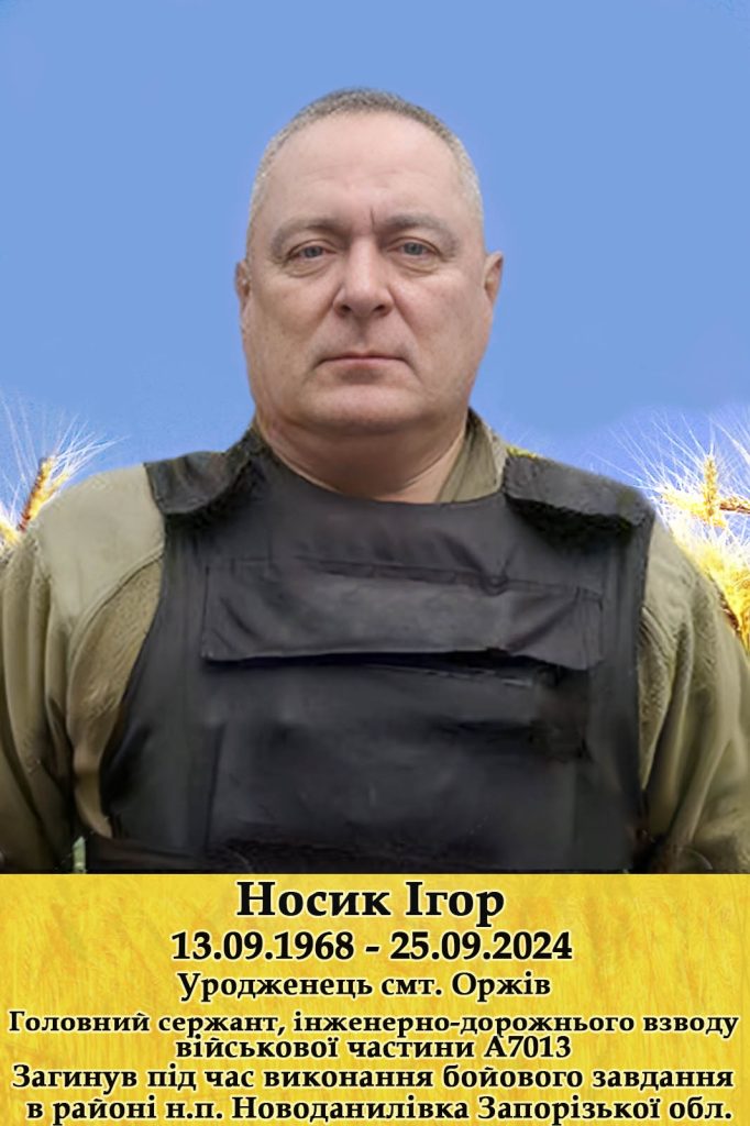 25 вересня 2024 року Ігор Носик загинув, під час виконання бойового завдання поблизу населеного пункту Новоданилівка, Пологівського району, Запорізької області.